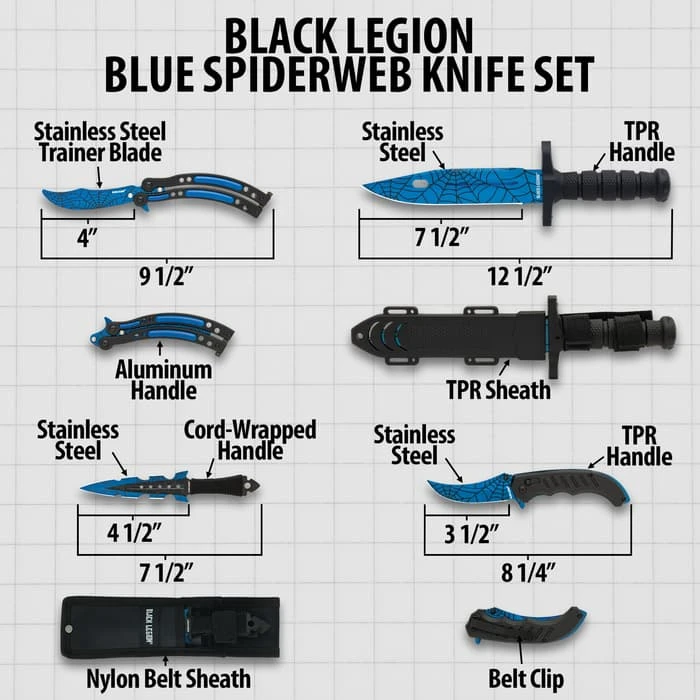 Black Legion Blue Spiderweb Set – Stainless Steel Blades, Heavy-Duty TPU Handles, Sheaths Included, Four Kinds Of Knives