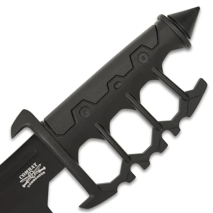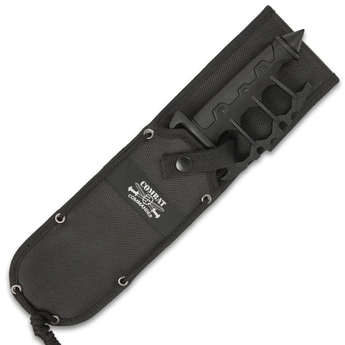 Combat Commander knows all about exceptional real world use weapons and the Trench Cleaver Knife will make another awesome addition to your tactical gear. The knife has a keenly sharp, 7 3/4” 1065 high carbon steel cleaver blade with a black, hard coating and it features a blood groove. The traditional knuckle knife handle has been given a tactical upgrade with its skull crusher pommel. It’s constructed of cast metal with black, no-slip rubberized grip inserts. The 12 7/8” overall trench knife can be carried and stored in its tough nylon belt sheath with a lanyard cord for lashing.