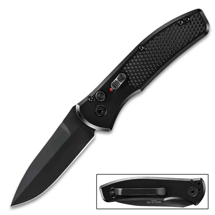 The Empower Automatic Pocket Knife was built for the everyday carry user, delivering trend-forward colorways and finishes in an easy-to-operate, safe-to-stow design that won’t rip up a jeans pocket. Military-grade insight and materials evolved to bridge the gap between function and fashion, giving you a daily workhorse, wielding quick deployment, and a safety-focused design that delivers aesthetically. Offering reliable control and a striking handle design, the Armored Grip handle scales are electroformed to provide a quick, confident grip. The 3 1/4” S30V stainless steel blade with its black, oxide-coated finish offers superior edge-retention and corrosion-resistance.