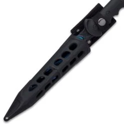 Gil Hibben has a history of designing knives for Sylvester Stallone to feature in his films, going back to the “Rambo III” Bowie. Stallone has been an avid collector of Gil’s custom knives, and that relationship continued when Stallone commissioned Gil to make several knives to use in his new films, “The Expendables” and “Expendables 2.” One of those was this never before produced, custom designed Old West Toothpick. It offers a classic 11 7/8″ Arkansas toothpick style 3Cr13 stainless steel blade with a mirror polished finish and a solid brass spine plate. The wooden handle features an elegant synthetic ivory inlay with a fine “Expendables” skull and crow etching. The Hibben “Expendables 2″ Toothpick includes a rugged leather belt sheath with a stamped Hibben logo and certificate of authenticity. Measures 17 1/2” overall.