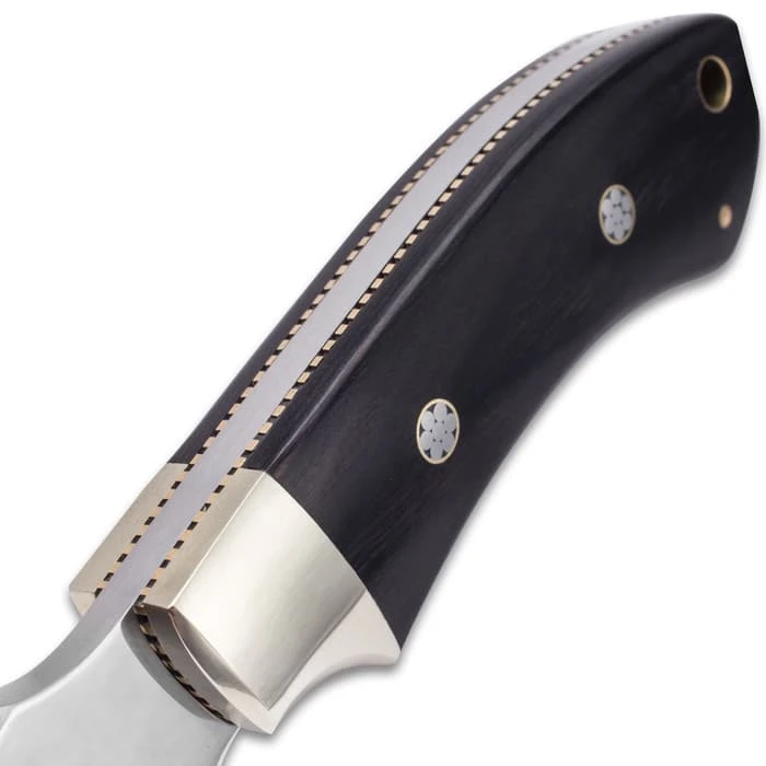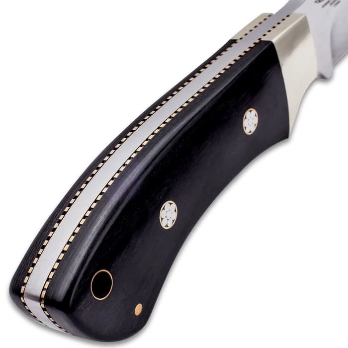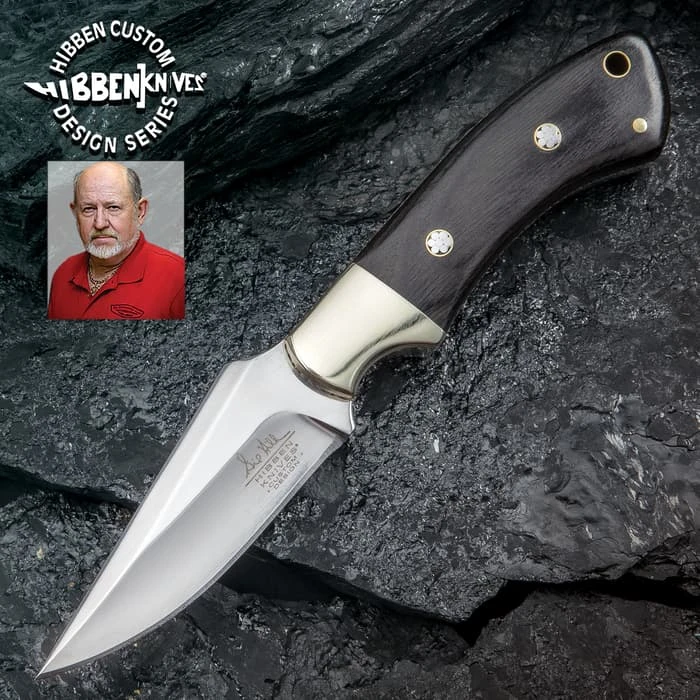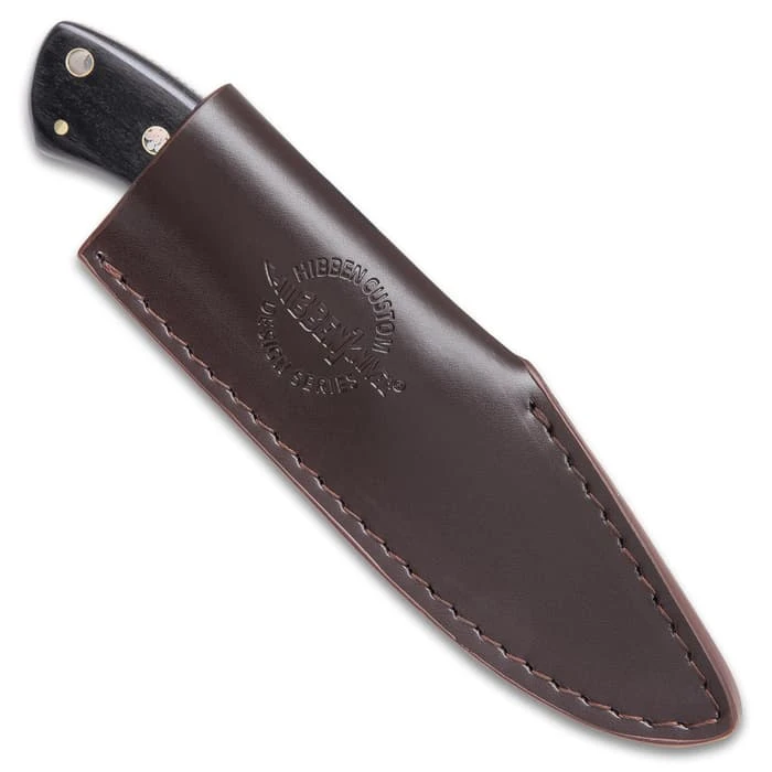 Knifemaker extraordinaire Gil Hibben continues to design exceptional knives made for hard everyday use. His Sidewinder is a smaller fixed-blade designed to fit comfortably on your side in its premium leather belt sheath. It features a sharp 3 1/2” 7Cr17 stainless steel blade and a black pakkawood handle that fits comfortably in your hand. The full-tang knife isn’t just a practical choice of an everyday fixed blade but typical of Hibben knives, it is visually pleasing with brass accents and decorative pins.