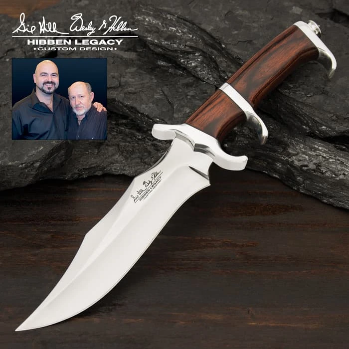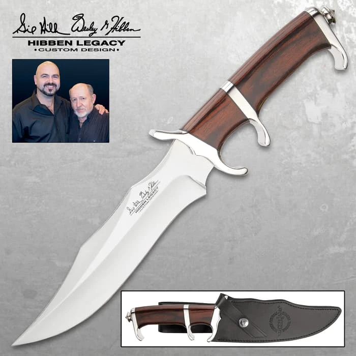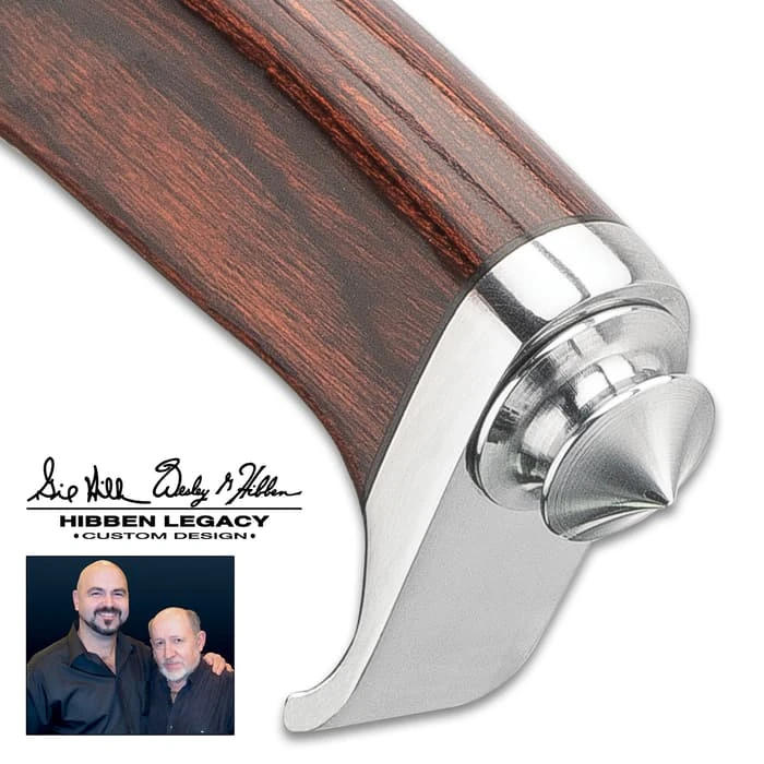 Renowned knifemaker Gil Hibben has been designing and producing top quality edged collectibles for more than 50 years. His son, Wesley, has been making and designing custom knives for more than 25 years. For the first time ever, Gil and Wes teamed up to create a priceless collectible series. The latest addition to the Hibben Legacy collaboration, this Darkwood Legacy III Fighter knife features a 7”, 5Cr15 stainless steel blade polished to a mirror finish. The highly polished stainless steel guard, sub-hilt and pommel add even more elegance to the black premium wooden handle.