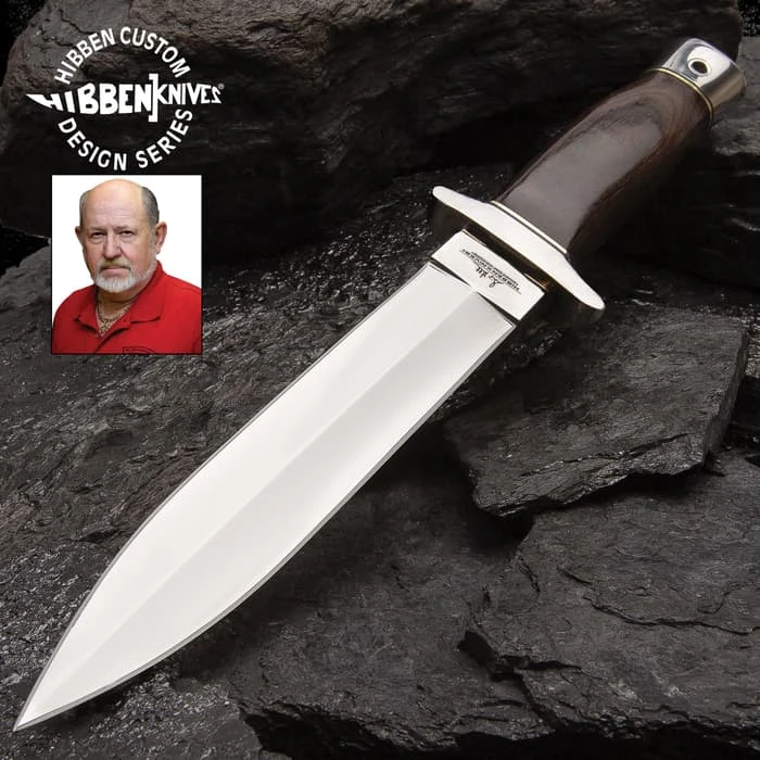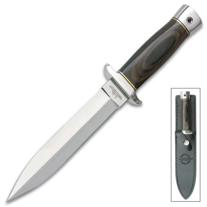 Hibben Double Edge Boot Knife With Sheath – 5Cr15 Steel Blade, Pakkawood Handle, Stainless Steel Guard And Pommel – Length 10 3/8”