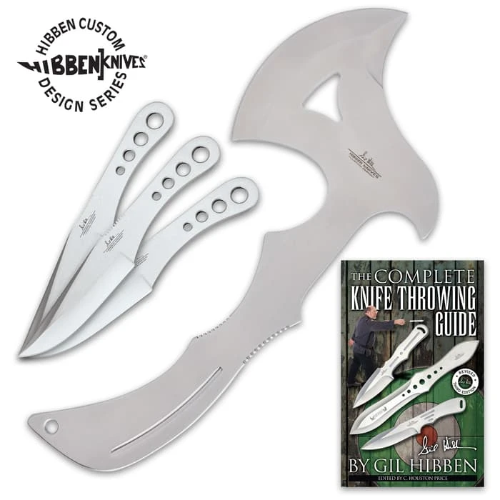 Hibben Throwing Set With Free Guide – Includes Throwing Axe And Throwing Knife Set, Stainless Steel Construction