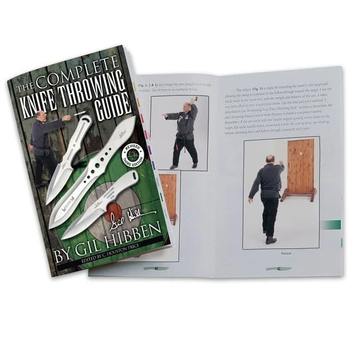 Designed by Gil Hibben, who is a master knife maker and avid knife thrower, both the Pro Throwing Axe and Throwing Knife Set will help improve your throwing skills hands-down! Especially, when you add the Complete Gil Hibben Knife Throwing Guide into the mix. You’re getting this fully-illustrated, comprehensive guide absolutely free, giving you a wealth of knowledge from a leading expert. Each of the three throwing knives and the throwing axe are perfectly balanced, one solid piece of stainless steel and they come with leather sheaths. The razor-sharp blades assure that you’ll stick the target more often than not. The axe is 12” overall with a curved edge and a trigger-grip design that guides it into the same consistent and accurate release each time that it’s thrown. Perfect for beginners, the 6 1/8” overall throwing knives are just large enough to get you started without being too large to learn with. The 64-page, knife throwing guide takes you through the basics of knife-throwing from grip to release and how to build a target that will work for your environment. Whether you’ve never thrown a knife before or are looking to improve, the Hibben Throwing Set With Free Guide is your go-to for everything knife-throwing related.