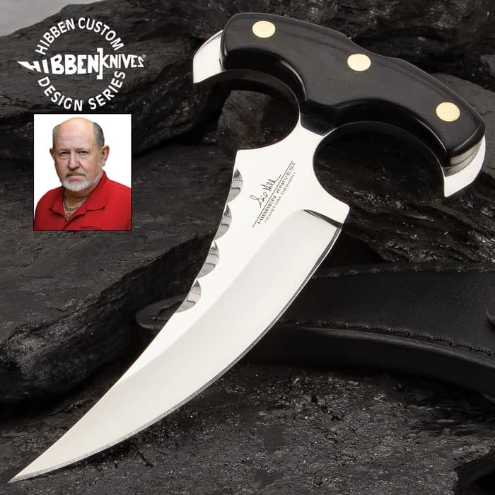 Designed by legendary knifemaker Gil Hibben to strike quickly and precisely, the Hibben Vulcan Push Dagger is a must-have for your personal defense gear! The mirror-polished, push dagger has a full-tang, 5 5/8” 5Cr13 stainless steel blade with an upswept edge, beveled spine and a penetrating point. The black pakkawood handle scales are secured to the beveled-edged tang with nickel silver pins, giving you a comfortable handle. For transport and storage, the 7” overall push dagger fits securely in its premium leather belt sheath with a snap strap closure.