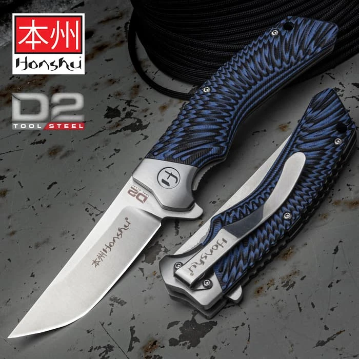 Honshu Black And Blue Sekyuriti Ball Bearing Pocket Knife – D2 Tool Steel Blade, G10 Handle Scales, Steel Pocket Clip