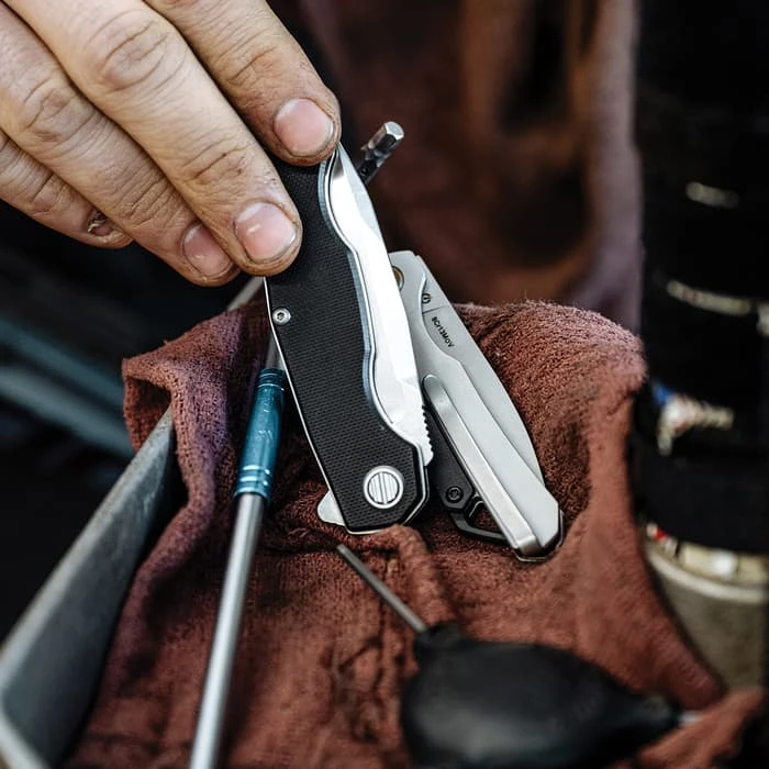 Slim, stylish, sharp – the Inception Pocket Knife is a dream to carry. Running on KVT ball bearings, this manual knife opens and closes with fidget-worthy action. Its modern design looks great with formal attire or your everyday gear. A custom pivot collar adds a touch of class to the design. Along with its visual qualities, the Inception rises above work challenges with sharp cutting ability. The D2 blade is long-lasting and strong for cutting tasks. G10 scales helps users keep a secure grip while slicing. This balance of refinement and practicality may seem like fantasy, but the Inception makes it a reality.