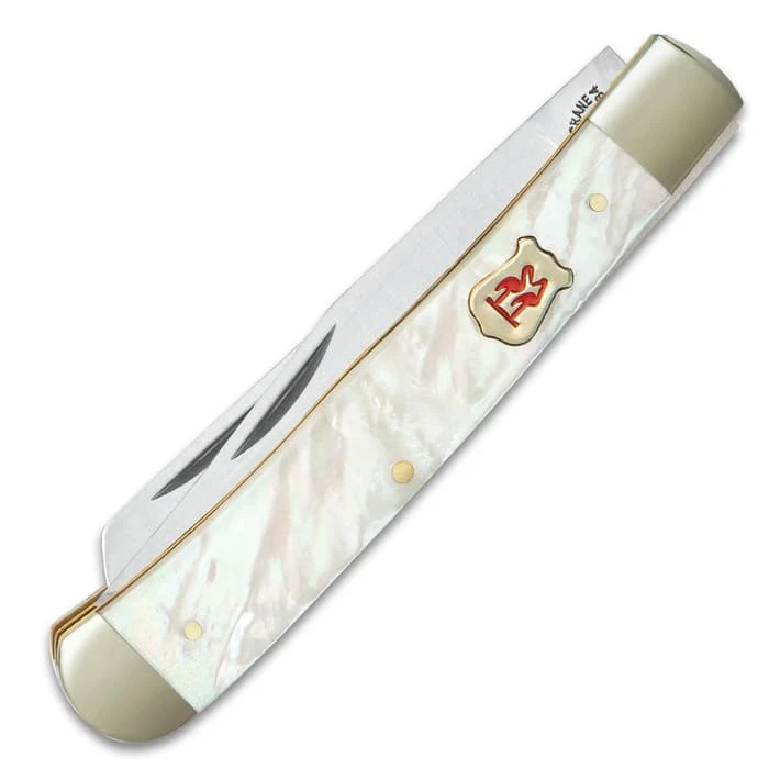 Kissing Crane Genuine Pearl Trapper Pocket Knife