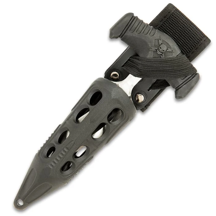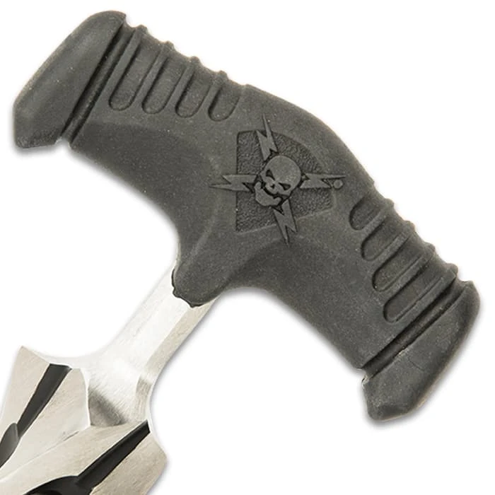 M48 Cyclone Push Dagger And Sheath – 2Cr13 Cast Stainless Steel Blade, Black Oxide Coating, TPR Rubber Handle – Length 7 3/8”
