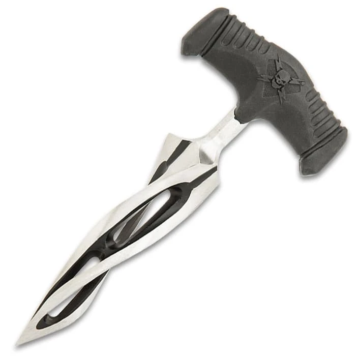 Always ahead of the curve, United Cutlery has taken its popular M48 Cyclone Push Dagger and taken it to a new level of fierceness. The push dagger has a 5 3/4” 2Cr13 cast stainless steel blade with an open twisted design giving you multiple razor-sharp edges. The T-handle is crafted of tough, molded TPR rubber with deep grooves for a secure, slip-free grip even in wet conditions. The 7 3/8” overall push dagger fits securely in a tough Vortec belt sheath so that its readily available when needed.