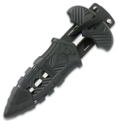 Always pushing the limits, United Cutlery takes its classic M48 fixed blade knife design and gives it an updated look and feel with the M48 Liberator Sabotage II Combat Knife – part of a brand new series of tactical tools. It has a keenly sharp cast stainless steel blade with a black oxide coating and satin finish highlighting, along with grooved sections. The layered G10 handle scales are secured to the full tang with heavy-duty screws and the handle has a lanyard hole. The 13 1/2” fixed blade knife slides securely into an injection molded Vortec and nylon belt sheath, which has a snap closure strap.