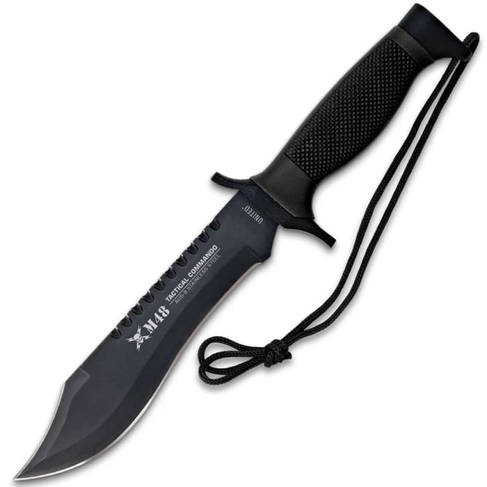 M48 covers all the bases of combat with this all new M48 Tactical Commando knife. Featuring a razor sharp AUS-8 stainless steel blade with powerful sawback serrations and a textured ABS handle with a lanyard, this tactical commando knife won’t let you down. The oversized hand guard protects your hand from the rock solid blade.
