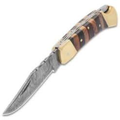 Timber Rattler Heartwood Scarab Back Giant Folding Pocket Knife – Carved Camel Bone Inlays