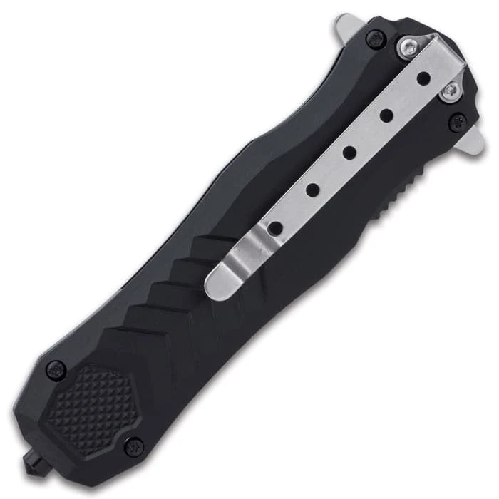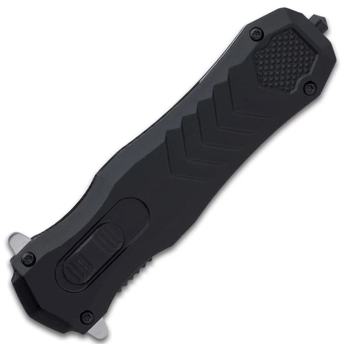 Rampage Faux OTF Knife – Stainless Steel Blade, Textured TPU Handle, Liner Lock, Pocket Clip, Glassbreaker
