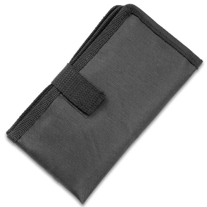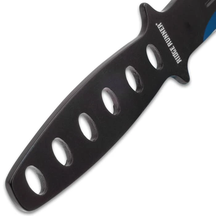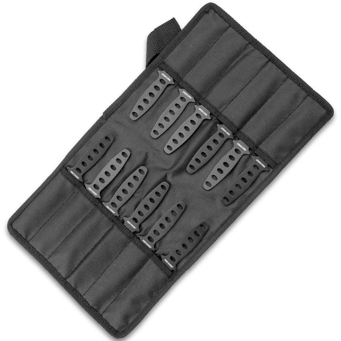 As cold and unforgiving as Arctic ice, our Ridge Runner Arctic Blue Throwing Knife Set has 12 perfectly balanced throwers, each with a sharp penetrating point. Each knife has a 5 3/4” solid, one-piece stainless steel construction with a metallic blue and black finish and weight-reducing thru-holes. For carry and storage, the sturdy nylon roll-up pouch holds all 12 throwing knives and it has a Velcro strap closure. Don’t let this awesome set pass you by.