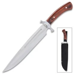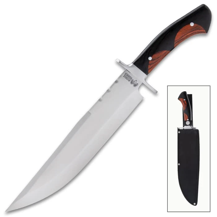 Ridge Runner Peruvian Bowie Knife And Sheath – Stainless Steel Blade, Wooden Handle, Stainless Steel Pins – Length 16 7/10”