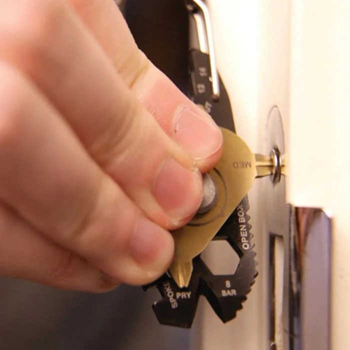 The SHTF 20-In-1 Multi-Tool EDC Keychain gives you an easy, portable solution for all your everyday tools. It is equipped with 20 different tools combined into one multi-tool with a revolving disc, which allows tools to be exposed while in use, so they are never in the way when you don’t need them. It is designed with 420 grade black stainless steel for a sleek look and the rotating tool disk is coated in gold titanium. The tools include a bottle opener, cutting blade, pry bar, wire stripper, nail cleaner, box opener, large flat driver, medium flat driver, eyeglass screwdriver, medium Phillips screwdriver, small Phillips screwdriver, bicycle spoke wrench, measuring ruler, 1/4″ wrench, 5/6″ wrench, 3/8″ wrench, 1/2″ wrench, and a 9/16″ wrench. The quick release clip carabiner gives you plenty of carry options and its compact size lets you carry it anywhere.