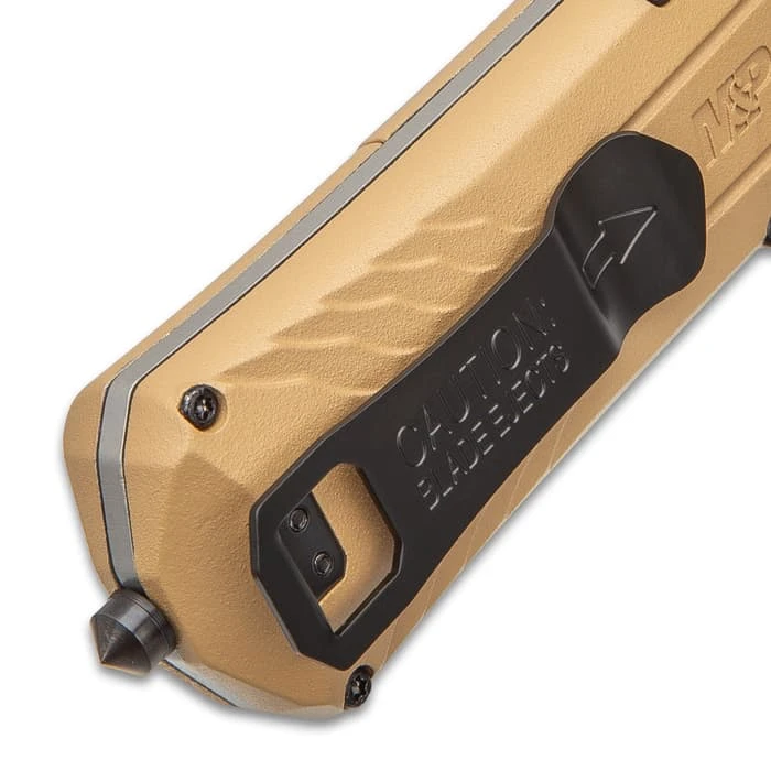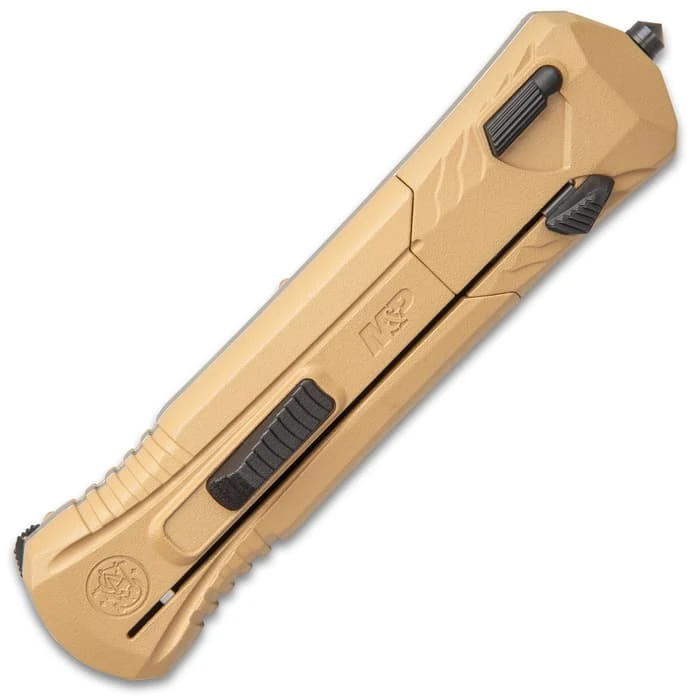 Smith & Wesson OTF Assisted Opening Flat Dark Earth Pocket Knife – AUS-8 Stainless Steel Blade, Aluminum Handle, Glass Breaker Pommel, Pocket Clip