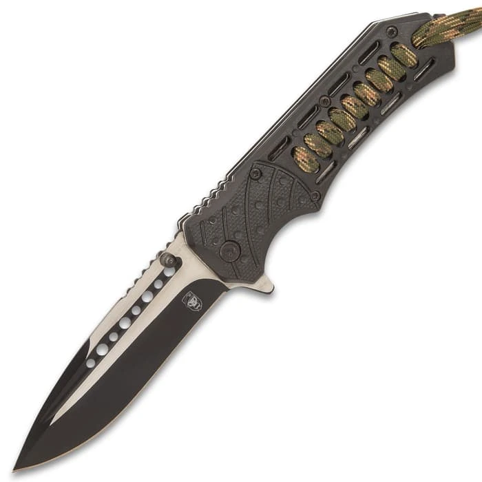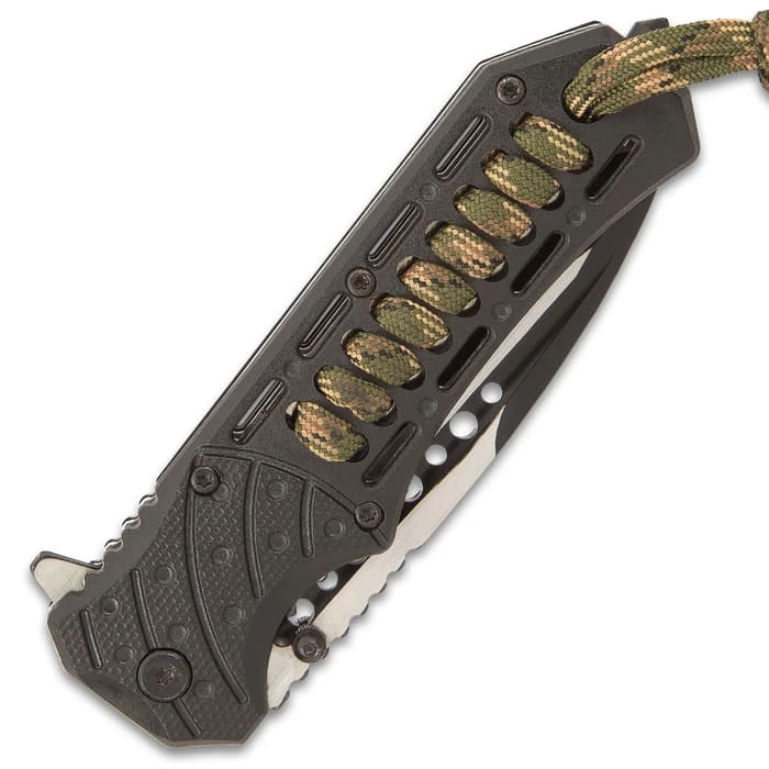 SOA Tour Of Duty Pocket Knife – Stainless Steel Blade, Assisted Opening, ABS Handle With Camo Paracord, Pocket Clip