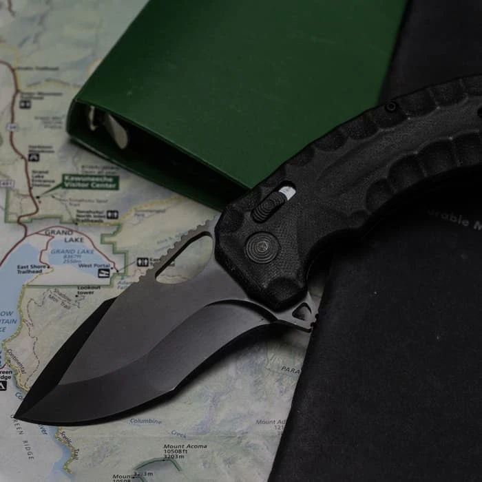 With a powerful styling that harkens to its Japanese DNA, the muscular Blackout Kiku XR Pocket Knife makes a subtle statement of strength wherever it’s carried. The high-utility, modified tanto blade cuts under virtually every condition, and the linen Micarta handle provides for a sure, secure grip. The XR lock is reliable and powerful, able to withstand up to 1,500 pounds of force, provides the ultimate built-in blade locking security when open and ensures it only opens when intended. Expertly blending form and function, the Blackout Kiku XR is a rugged solution for situations that require a quick opening, razor-sharp folding knife. This is a classy knife. This is a rugged knife. This is a knife that will last a lifetime.