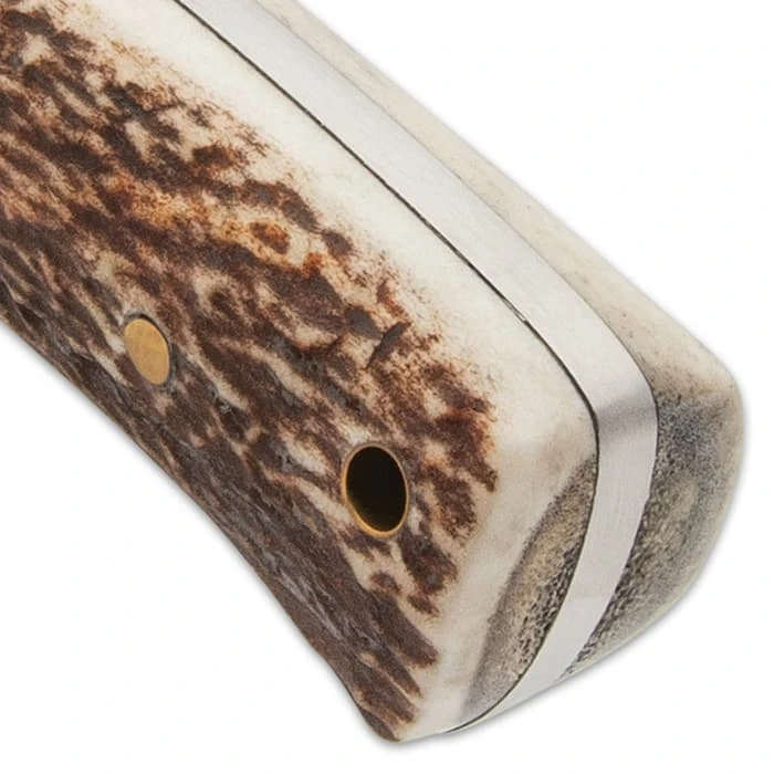 Special Edition Hibben Stag Chugach Hunter Knife With Sheath – German Steel Blade, Genuine Stag Handle, Brass Hand Guard