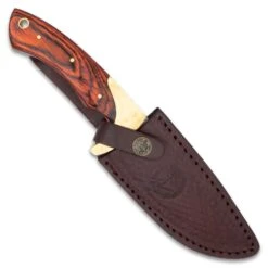 Skinning a buffalo requires a big, sharp blade, and that’s just what the Timber Rattler Buffalo Joe Fixed Blade Knife is at 12 1/8″ overall. A black pakkawood handle is accented by a brass plated pommel, guard and trigger handle. A 7 1/4″ stainless steel blade is honed to a razor sharp edge to make quick work of any task. Includes brown leather sheath.