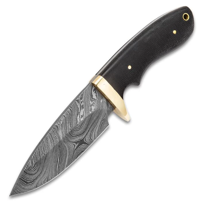Moderately sized, the Bear River Skinner from Timber Wolf makes quick work of skinning and/or caping medium to large game, with plenty of cutting power leftover to tackle countless everyday tasks around the house or out in the field. Its 4 1/2″ Damascus steel blade features a distinct grind that’s engineered to yield an ideal skinning stroke, and the carefully honed edge slices cleanly through tough animal hides and other challenging materials. The striking Damascus steel is a breathtaking labyrinth of unique swirls, ellipses and waves – the result of a centuries-old metalsmith technique that involves painstakingly firing, folding, hammer welding and acid etching hundreds, sometimes thousands of layers of premium high carbon steel. It’s a slow, meticulous process that requires diligence and skilled hands – no computerized robots or mechanization. But take one look at the Bear River Skinner, and you’ll agree it’s well worth the effort! Thoughtfully and ergonomically contoured, the black Micarta handle facilitates superb blade control and is extraordinarily durable. It’s polished to a mirror finish and offset with brass pins and a brass-lined lanyard hole. The included genuine leather belt sheath protects the blade and makes transport a breeze. Equally suited to challenging field work or display – on its own or in a fine knife collection – , the Bear River Skinner is a must-have for outdoorsmen, cutlery enthusiasts or anyone who appreciates outstanding design and remarkable craftsmanship.