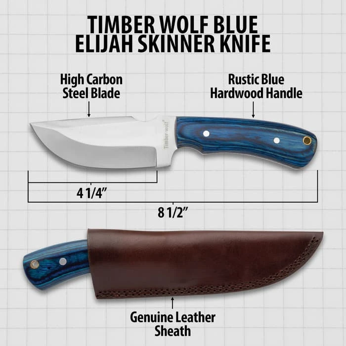 Timber Wolf Blue Elijah Carbon Steel Skinner Knife With Leather Sheath