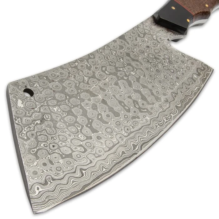 Timber Wolf Executive Cleaver Butcher Knife – Damascus Steel Blade, Full-Tang, Wooden Handle