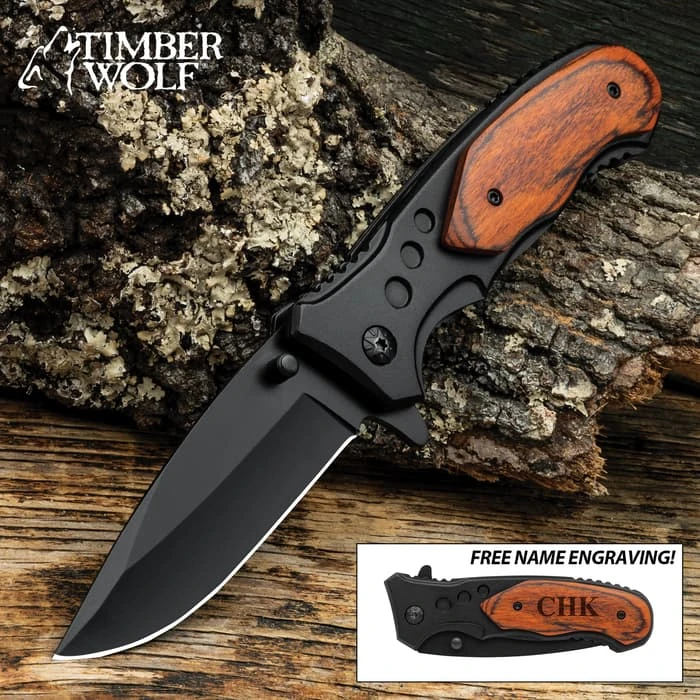 Timber Wolf Expedition Pocket Knife – 3Cr13 Stainless Steel Blade, Engravable Pakkawood Handle, Assisted Opening