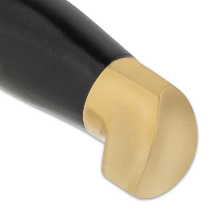 Timber Wolf Indus Valley Bowie Knife And Sheath – Stainless Steel Blade, Black Buffalo Horn Handle, Brass Pommel – Length 16”
