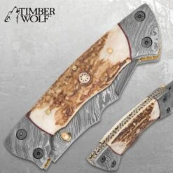 The Timber Wolf Limited Edition Trump Bowie Knife beautifully commemorates the 45th President of the United States. It has a 10 1/2” full-tang 3Cr13 stainless steel blade with a President Trump themed etching and a brass handguard. The handle scales are crafted of blue wood, accented with alternating stripes of white resin and reddish brown wood. Inserted into the center of the handle, in bright white, are the words “Donald Trump” flanked by two rows of stars. The blade is housed in a premium leather belt sheath with a snap closure. Timber Wolf continues to bring you top-quality knives with a custom look and feel at unheard-of prices!