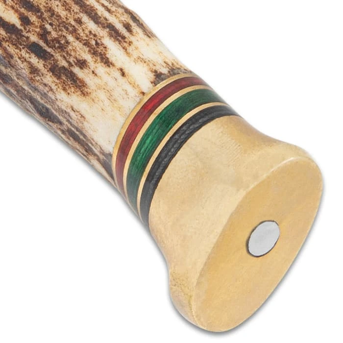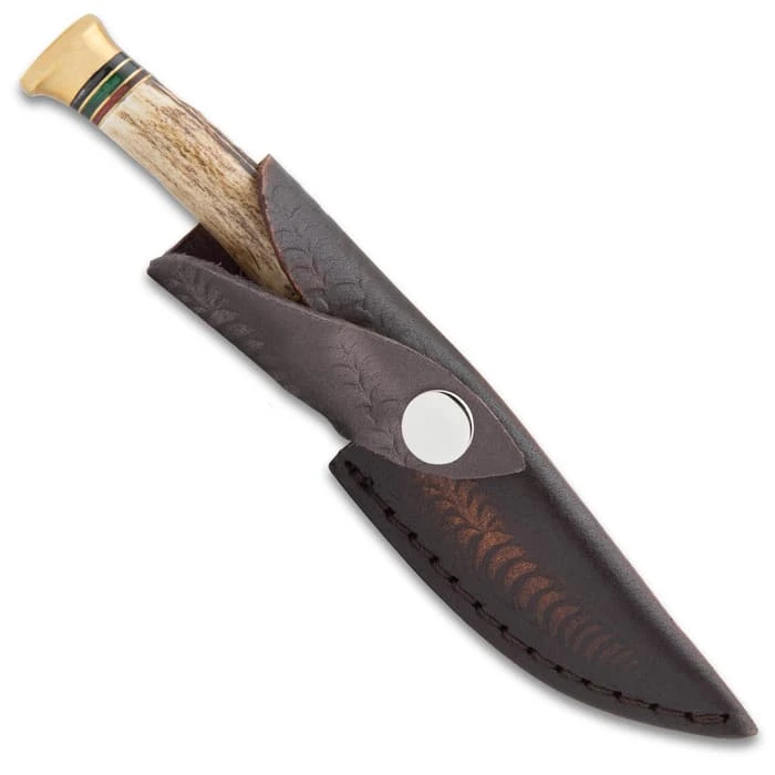 Timber Wolf Mini Trail Knife And Sheath – Stainless Steel Blade, Stag Handle, Brass Pommel – Length 6 1/4”