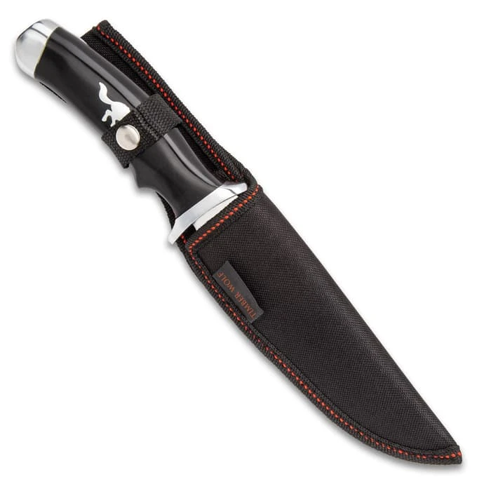 Timber Wolf Running Wolf Fixed Blade Knife With Sheath – 3Cr13 Stainless Steel Blade, Polyresin Handle, Stainless Steel Pommel – Length 11”