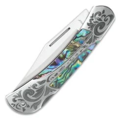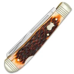 As sleek and streamlined looking as a wolf streaking through the woods under a full moon, the Timber Wolf Running Wolf Fixed Blade Knife makes a handsome addition to a wolf-themed knife collection. It has a full-tang, razor-sharp, 6” 3Cr13 stainless steel clip point blade with a mirror polish finish and a stainless steel guard. It has a black polyresin handle, which features an inlaid stainless steel running wolf medallion and a stainless steel pommel. The 11” overall length fixed blade knife slides securely into a tough nylon belt sheath for storage and ease of carry.