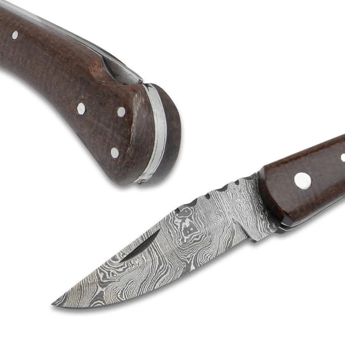 Timber Wolf Workman Pocket Knife – Damascus Steel Blade, Micarta Handle Scales, Stainless Steel Pins, Lockback