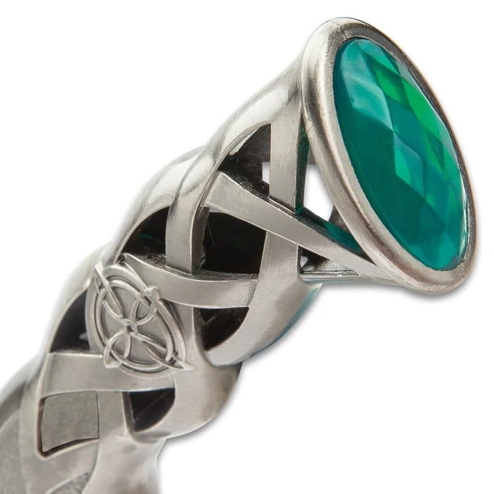 Twisted Celtic Dagger With Sheath – Stainless Steel Blade, Solid Steel Handle, Faux Emerald Accent – Length 10”