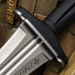 This large Honshu Push Dagger is constructed from one solid piece of AUS-6 stainless steel with double edge styling and rubberized, contoured grips for pure thrusting power. It has a 4″ blade and is 5 3/4″ in overall length. A belt sheath is included.