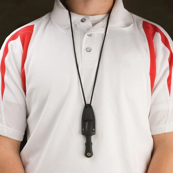 The ultimate in concealed, compact self defense, the Sub Commander Mini Boot Knife hides discreetly within reach at all times. An injection molded sheath with a nylon lanyard ensures it’s close at hand in case of attack. An impact resistant TPR handle is strong and textured for a slip-proof grip, complete with a brass lanyard hole. The razor sharp AUS-6 stainless steel blade is double edged with a complete blood groove for an extreme cut when stabbed or slashed. The extended TPR guard protects against accidental injuries to your hands while in use. Measures: 5″ overall; 2 1/2″ blade.