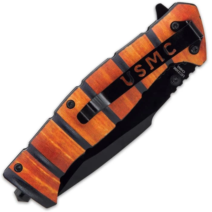USMC Classic Marine Pocket Knife – Stainless Steel Blade, Non-Reflective, TPU Stacked Handle, 3-D Printed, Pocket Clip