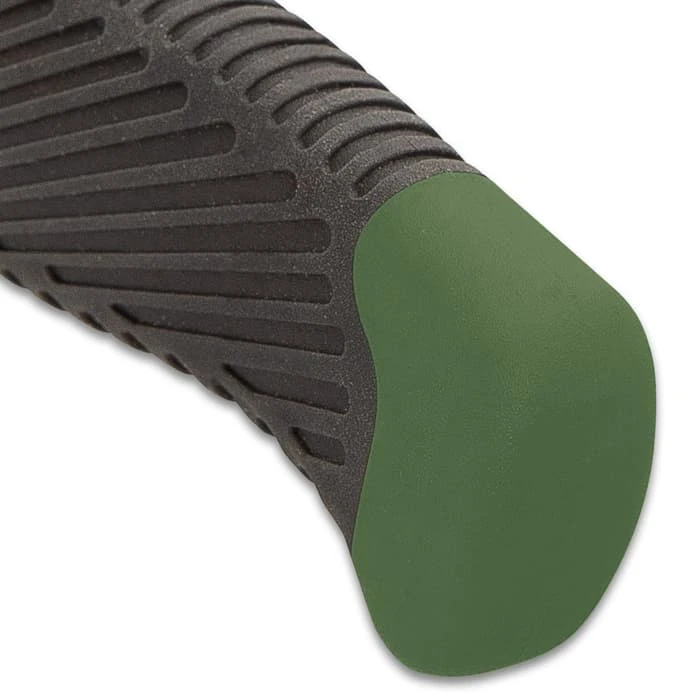 The USMC Tactical Tanto Knife is a great, all-purpose battle fixed blade designed to accomplish those cutting tasks that come up in the field. It has a 4” 1065 carbon steel tanto blade with a black, non-reflective finish and it’s razor-sharp and ready for action. The tough, TPU handle is heavily ridged and rubberized for a secure, no-slip grip even in wet environments. The 8 1/2” overall fixed blade knife snaps securely into a hard, ABS belt sheath that features lashing holes.
