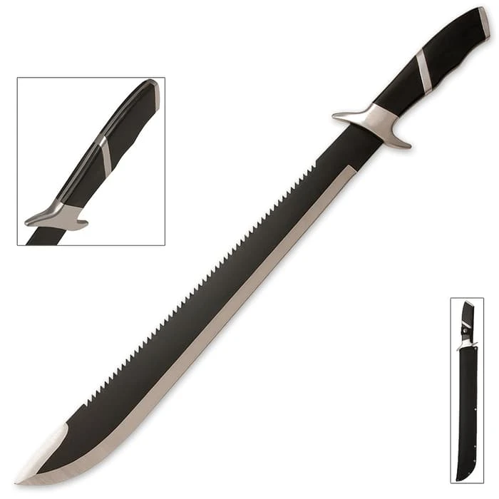 War Hunter Sawback Machete With Nylon Sheath – Black