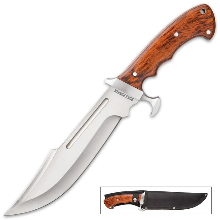Our Woodsman’s Knife Set is a collection of Ridge Runner knives that features handsomely crafted, premium wooden handles. A high-quality set like this makes an excellent choice of gift for a husband, father, son or friend. The Woodland Reverie Bowie Knife features richly veined zebra wood handle scales that are not only visually attractive but supremely hard and wear-resistant. It has a hefty 8” stainless steel blade and a uniquely designed, cast metal guard. Even though the bowie knife is impressive at 13 1/4” overall, its ideal weight distribution makes it effortless to use. The second bowie knife included is the Denali Ridge Bowie, which will make short work of any cutting or chopping task that comes up when you’re out on the trail, at the campsite or on the hunt. It features natural-look, woodgrain pakkawood handle scales, secured with stainless steel pins, and has a comfortably curved design. The full-tang, razor-sharp 3Cr13 stainless steel clip point blade is a massive 11” and the spine has partial filework. This is a workhorse up that you can depend on to stand-up to hard-used for years and years. Finally, included in the premium set is the Gentleman’s Hunting Pocket Knife, a great addition to your hunting gear to take care of the cutting tasks that come up during the season. The premium pakkawood handle scales also have a natural-look woodgrain and are complemented by a stainless steel bolster and leather lanyard. The keenly sharp 3 1/2″ stainless steel blade with a satin finish, which can be deployed quickly with assisted opening. The great-looking pocket knife is 4 3/4”, when closed, and has an overall length of 8”. Each of the fixed blade knives can be carried in its tough nylon belt sheath and the pocket knife has a pocket clip. The Woodsman’s Knife Set highlights the true craftsmanship that makes Ridge Runner Knives the top of the line in today’s market!